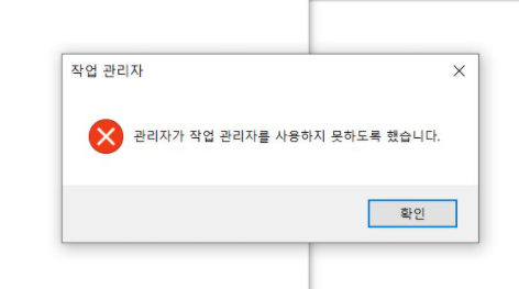 크롬 브라우저가 자꾸 말썽을 일으키는 관계로 작업관리자를 실행해서 메모리 점유율 등의 상태를 보려고 했으나, "관리자가 작업 관리자를 사용하지 못하도록 했습니다"라는 메세지가 뜨면서 실행이 안되네요.